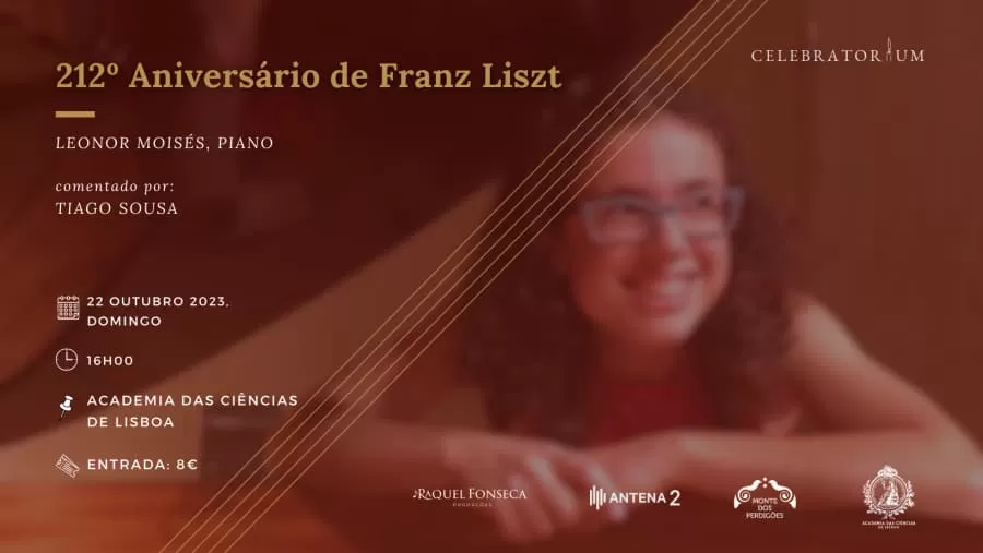 No dia 22 de Outubro, pelas 16h00, na Academia das Ciências de Lisboa, junta-te a nós para celebrar a magia da música de Franz Liszt com o CELEBRATORIUM! O ciclo de concertos que é uma verdadeira viagem através do tempo, celebrando aniversários de grandes compositores e intérpretes que moldaram a história da música. A pianista portuguesa Leonor Moisés traz à vida um pouco do enorme espólio musical que nos deixou Liszt, no dia do seu 212º aniversário. O musicólogo Tiago Sousa acompanha com um comentário enriquecedor, revelando alguns dos segredos por trás das notas.