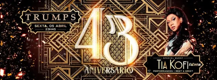 Mas as surpresas não acabam por aí. Tia Kofi estará disponível para um meet&greet altamente exclusivo! Tenham a oportunidade de conhecer esta diva de perto, tirar fotografias e partilhar momentos únicos nesta noite memorável. Então, deixem as vossas preocupações à porta, coloquem os sorrisos nos rostos e preparem-se para uma festa que será comentada por anos a fio! Mal podemos esperar para vos ver brilhar nesta noite tão especial. Com amor e confettis, Trumps Club – Lisboa
