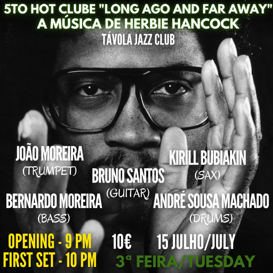 Duas noites para mergulhar no universo musical de Herbie Hancock, um dos maiores mestres do jazz moderno, através da interpretação magistral de músicos de topo da cena portuguesa e internacional. O palco do Távola Jazz Club será tomado pelo projeto 5to Hot Clube, num tributo que alia tradição e inovação.