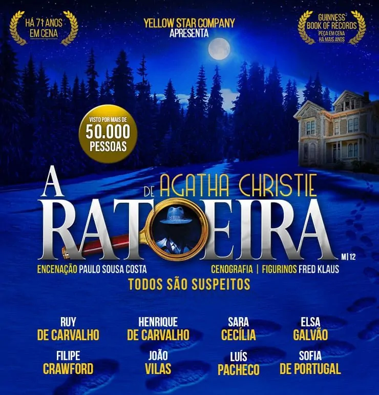 Estreada em Londres em 1952, “A Ratoeira” tornou-se um fenómeno mundial, entrando para o Guinness Book of Records como a peça em cena há mais anos consecutivos. A história acompanha um grupo de desconhecidos presos numa pensão durante uma tempestade de neve, onde se esconde um assassino. Entre tensões, segredos revelados e investigações inesperadas, cada personagem pode ser o culpado.