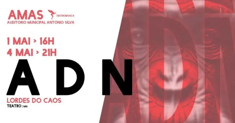 1 mai > 16h 4 mai > 21h ADN [teatro] pelos Lordes do Caos no AMAS – Auditório Municipal António Silva