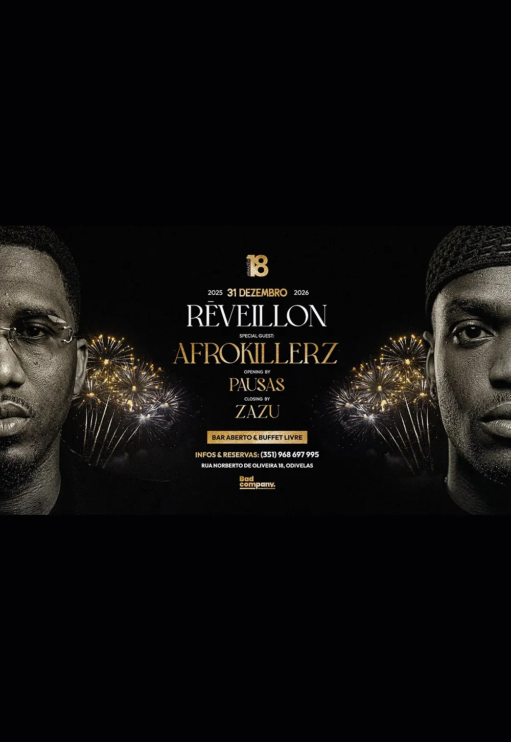 A Passagem de Ano 2025/26 promete ser intensa e inesquecível em Lisboa com o REVEILLON 2025/26 | AFROKILLERZ, uma noite longa, vibrante e cheia de atitude no Armazém 18, em Odivelas. Durante 7 horas de celebração, a música, a energia e a pista de dança unem-se para receber 2026 da melhor forma.