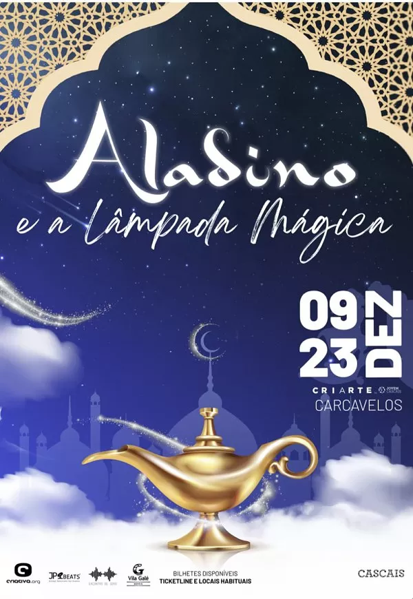 Baseado no conto árabe Mil e uma Noites, um dos mais famosos da célebre coletânea que faz parte do imaginário de várias gerações. Um espectáculo deslumbrante para toda a família pela sua magia e fantasia, falando-nos de valores de liberdade, tolerância, solidariedade e humildade. Voando no tapete mágico, o espectador é transportado para as noites quentes das Arábias vivendo as aventuras de Aladino.
