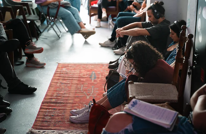 Após a escuta coletiva, os jornalistas Rafaela Cortez e Ricardo Esteves Ribeiro moderam uma conversa com o público e investigadora Giulia Daniele, professora no departamento de História do Iscte — Instituto Universitário de Lisboa, que desde 2005 trabalha sobre e na Palestina.