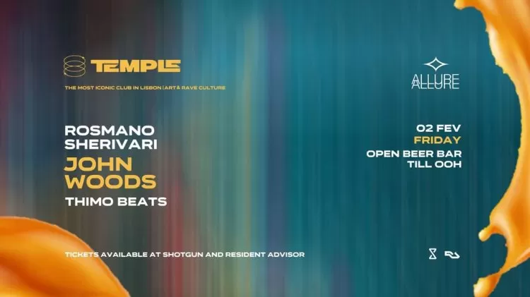 Allure invites John Woods, Sheri Vari, Thimo Beats and Rosmano! 2 Fevereiro, sexta-feira, 22:00 > 02:00, no Temple.