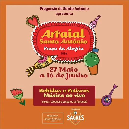 De 27 de maio a 16 de junho, o Arraial de Santo António vai animar a Praça da Alegria (Jardim Alfredo Keil) com bebidas, petiscos e música ao vivo. Há melhor maneira de começar o verão? Apareça!