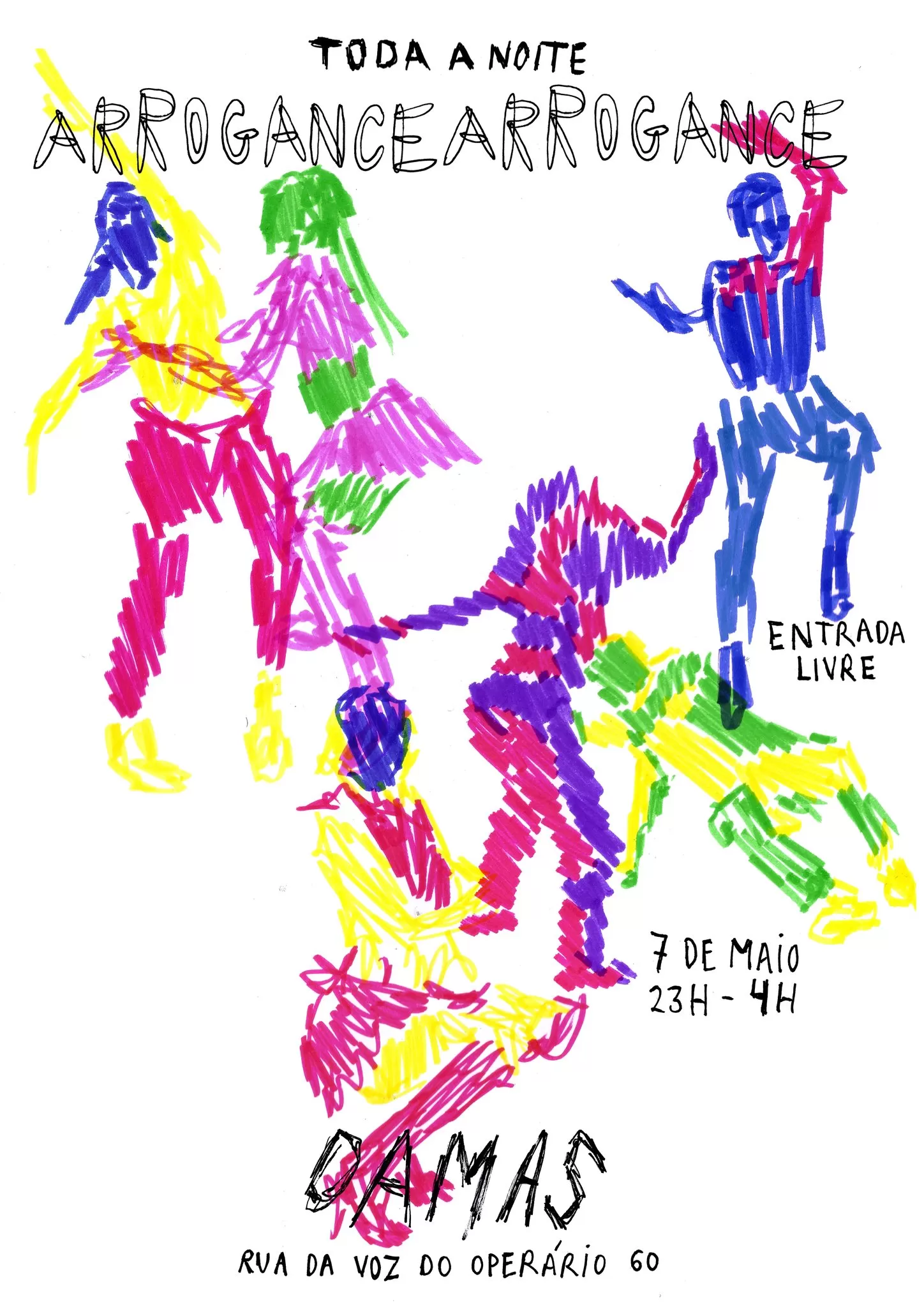 Agitador da movida portuense, dono de uma visão bem própria sobre a forma como as coisas podem e devem acontecer, Arrogance Arrogance regressa, ao fim de demasiado tempo, às Damas com o seu flow bem real e in your face de ghetto house, footwork, hardcore da rua e música da vertigem que nunca foi pensada para a pista mas por lá pode flutuar com o devido poder de encaixe. Mentor da ÁCIDA, que reinstituiu nos hábitos nocturnos da cidade a frontalidade e romance DIY da dança, é das figuras mais dotadas e valentes a inventar soluções e clivagens dos pratos/cdjs para os corpos.