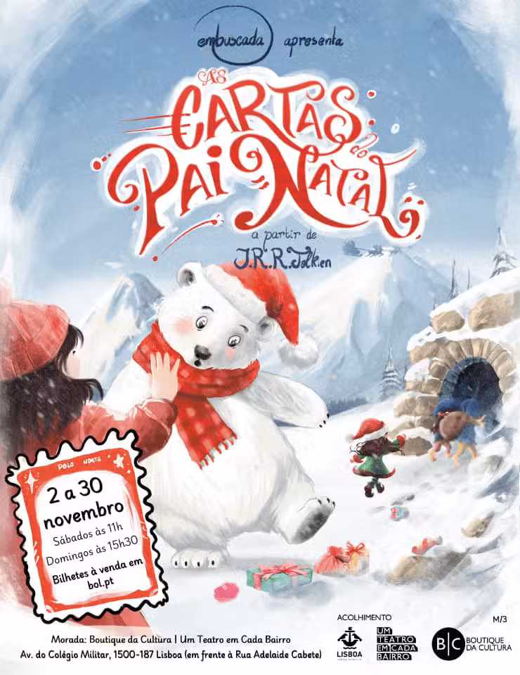 As Cartas do Pai Natal, é um espetáculo interativo que nos conta as maravilhosas histórias da vida atarefada do homem das barbas brancas no Pólo Norte, pela altura do Natal.Vamos descobrir a forma como o Pai Natal preparava os brinquedos e as travessuras com que o seu Urso Polar o atrasava. Mas não só! Bonecos de neve, elfos, um homem da lua e as batalhas com os maléficos duendes ameaçam a saída do trenó mais famoso de todos os tempos!Uma história diferente e encantada, para todas as idades e que enriquece a magia do Natal.