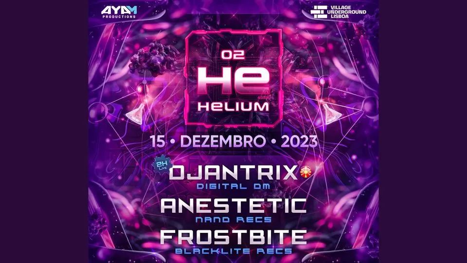 Ayam Productions, em colaboração com Village Underground Lisbon, orgulha-se de apresentar “Helium”. Uma imersão nas sonoridades psicadélicas, no coração de Lisboa. Para este evento épico, convidamos Martin Georgiev, também conhecido como Djantrix, diretamente da Macedônia do Norte. Martin tem dominado consistentemente os maiores palcos do mundo, marcando presença em todos os principais festivais do gênero, várias vezes. Criador de sonoridades únicas e envolventes, ele desembarcará em Lisboa no próximo dia 15 de dezembro para um live especial de duas horas, guiando-nos por uma jornada psicadélica incomparável. Representando Portugal, teremos DJ Anestetic, que nos brindará com as mais recentes criações da Nano Records, e Frostbite, que, após um retiro inspirador na Alemanha, retorna cheio de energia e novas criações para compartilhar com todos. Contamos com a vossa presença neste evento imperdível no dia 15 de dezembro, das 23:00 às 06:00. Não percam essa oportunidade única de vivenciar a magia do “Helium” no cenário vibrante de Lisboa.