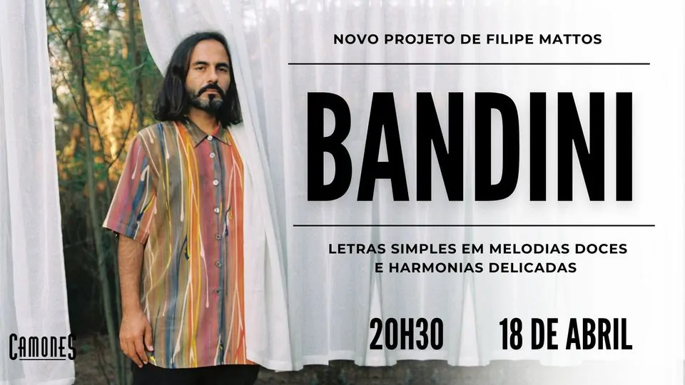 Bandini é o novo projeto de Filipe Mattos (Orfélia). Sua música combina letras simples em melodias doces e harmonias delicadas, para expressar sentimentos tão pessoais e, ao mesmo tempo, tão comuns a todos. Influenciado pela música popular brasileira dos anos 70 e 80, Bandini recentemente lançou seu primeiro single e videoclipe, para o tema “Não Vou Mudar”. Atualmente o projeto está a gravar as músicas do seu primeiro EP. Para este concerto, Bandini irá tocar a solo músicas próprias e versões de grandes nomes da música brasileira, como Caetano Veloso e Alceu Valença.