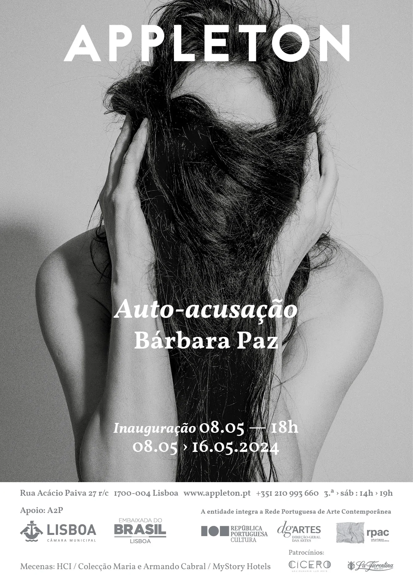 A atriz, realizadora e produtora brasileira Bárbara Paz regressa a Portugal para inaugurar a 8 de maio “Auto-acusação” na Appleton Associação Cultural. Esta é a sua primeira exposição individual, que reúne fotografias, vídeo, intalação e performance, e que, em 2023, esteve patente na Galeria Fonte, em São Paulo e no Centro Municipal de Arte Hélio Oiticica, no Rio de Janeiro.