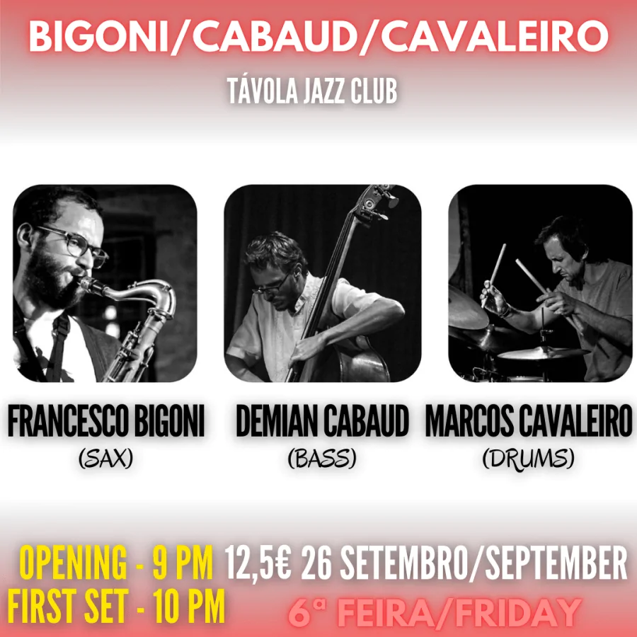 No dia 26 de setembro de 2025, o Távola Jazz Club recebe o trio Bigoni/Cabaud/Cavaleiro, para uma noite de jazz ao vivo que promete envolver os amantes do género com sonoridades contemporâneas e improvisação de alto nível.