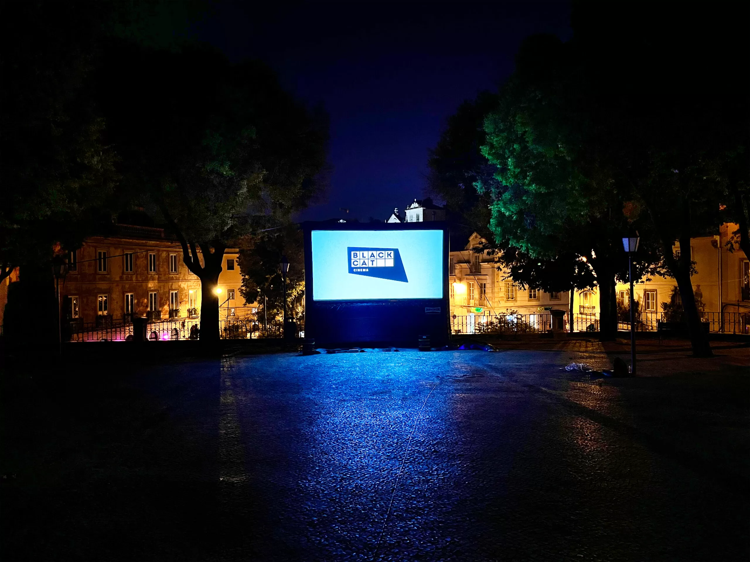 O Black Cat Cinema apresenta no largo histórico da Igreja de Santos uma série de eventos aos Domingos. Em parceria com a Junta de Freguesia da Estrela e com os grassroots organisation Santos Collective, o largo transforma-se num cinema ao ar livre.