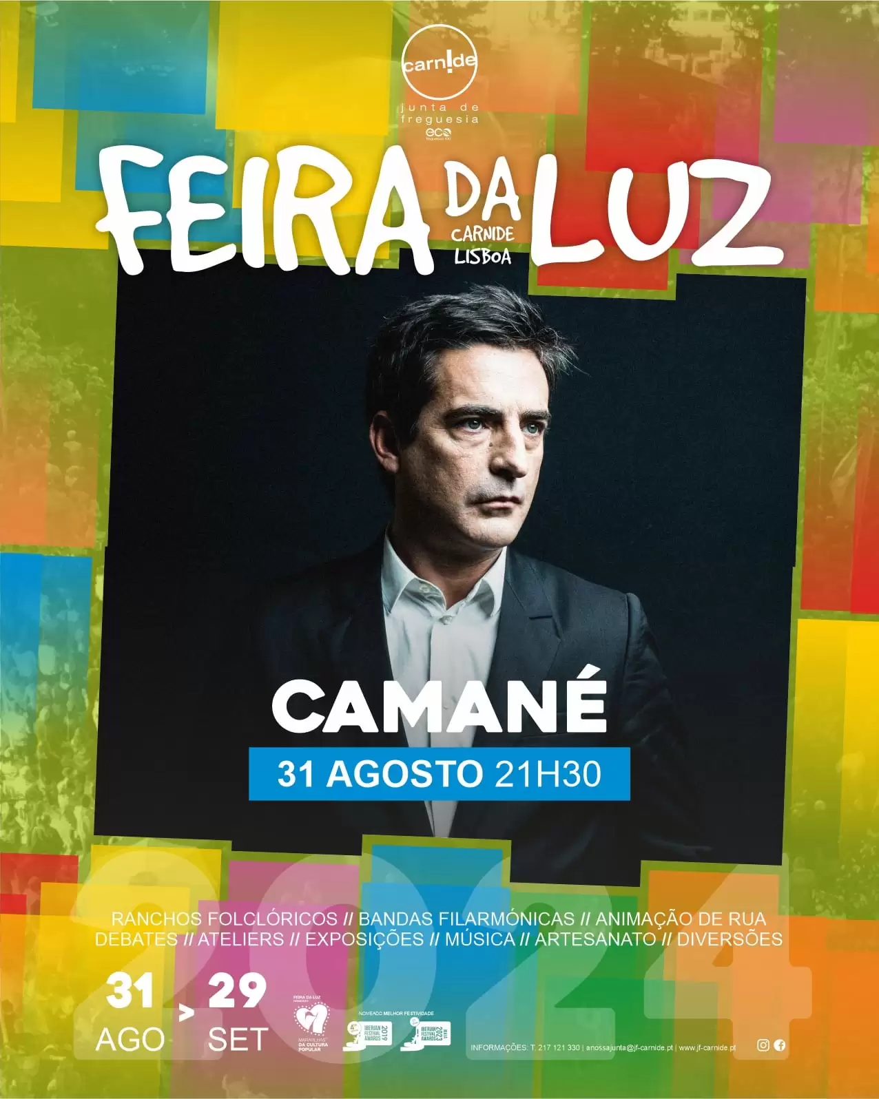 Camané | Feira da Luz 2024 Feira da Luz 2024 | Concerto com Camané Marque na sua agenda! . . “Fazer felizes os felizes que aqui vivem.” . #jfcarnide #carnide #feiradaluz2024 + Adicionar ao Google Calendar + iCal / Outlook export Tags: fadolisboa Data 31 Ago 2024 Desde Hora 21:30 Localização Largo da Luz Lisboa Categorias Concertos | MúsicaEventos ao Fim de SemanaFestas e Arraiais Share this event Teatro Stand up Comedy Infantil Música Eventos Gratuitos Exposições Este Fim de semana