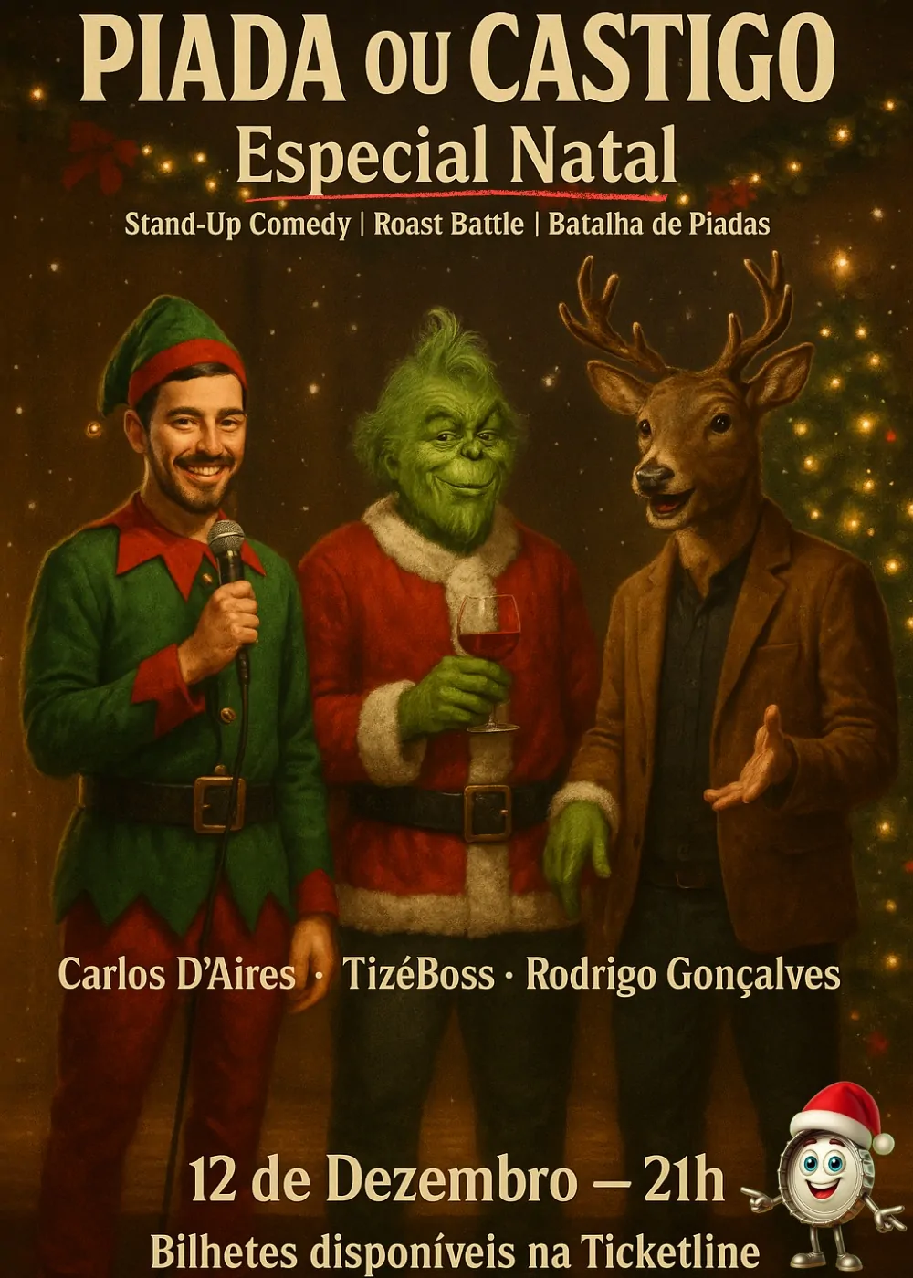 Carica Comedy Club Carica Comedy Club especial de natal com stand up comedy, Batalha de piadas e roast battle + Adicionar ao Google Calendar + iCal / Outlook export Tags: Natal Lisboa Data 12 Dez 2025 Desde Hora 21:00 Localização Biblioteca Municipal Ary Dos Santos Rua James Gilman, 18 - Sacavém Categorias Stand Up Comedy Share this event Teatro Stand up Comedy Infantil Música Eventos Gratuitos Exposições Este Fim de semana
