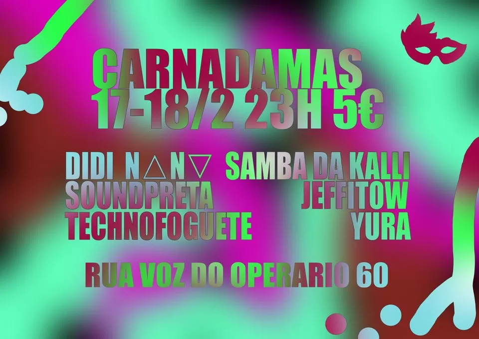 A celebração se dará nos dias 17 e 18 de Fevereiro entre 23h às 4h, com uma vasta programação que contará com os mais variados diamantes brasileires que já são parte integrante da história da nossa casa e do carnaval em Lisboa.