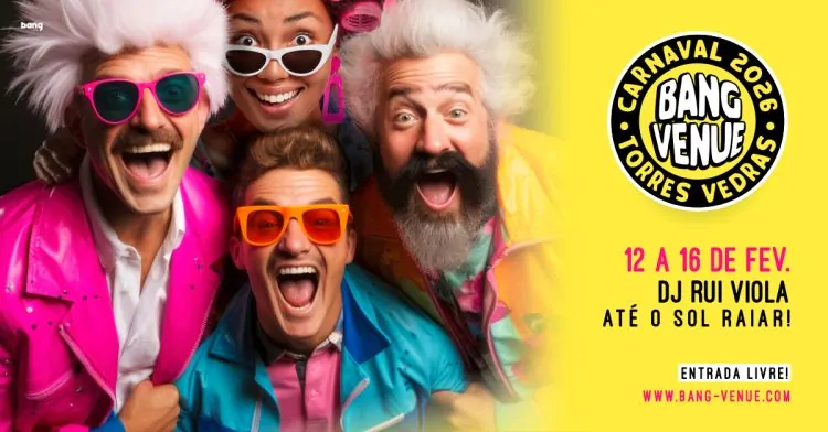 De 12 a 16 de fevereiro de 2026, a Bang Venue em Torres Vedras acolhe o Carnaval de Torres Vedras com o tema “Mundo Encantado”. Prepare-se para cinco noites de magia e folia, com muita música e diversão até o amanhecer.