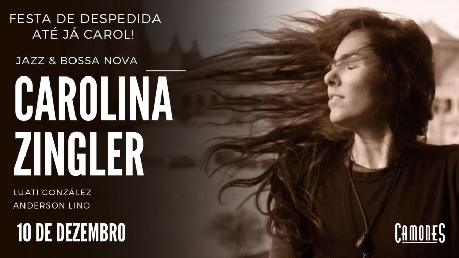 “Meu violão me faz livre, meu canto me faz voar, e a coragem de assumir esse jeito de viver me possibilita ir além de tudo que eu imaginei pra mim. Tem dias que eu viajo sem sair do lugar, tudo na sensação interdimensional que a música me traz. É isso … pra mim, a música é um portal sensorial de conexão com o invisível. Carolina Zingler” Carolina Zingler é guitarrista, compositora, cantora, pesquisadora de sonoridades, mulher, busker. Nasceu no sul do Brasil e viaja o mundo apresentando suas canções. Tem 4 discos gravados e prepara seu 5º álbum em 2023. Em 2020 lançou documentário “Take my soul to fly”que conta sua história como busker viajante pela Europa e África, apresentando seu projeto Esquina do Jazz, passando por Lisboa, Luxemburgo, Paris, Praga, Amsterdã, Berlin, Marraskesh, Saara e Porto. A webserie pode ser assistida em seu canal do Youtube/CarolinaZingler. Nesta noite vamos, mais uma vez, ligar-nos à Carol, desejar boa viagem até ao Brasil e esperar um regresso para breve!