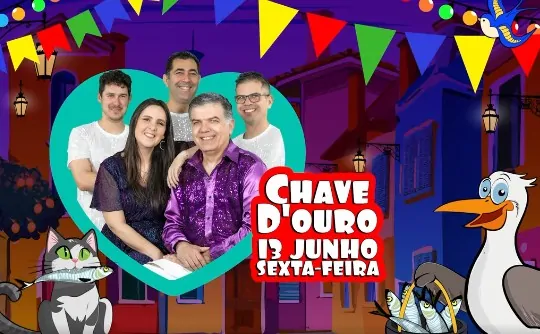 Com mais de 30 anos de carreira, os Chave D’Ouro são um dos grupos mais emblemáticos da música popular portuguesa. Com temas como “Roubaste-me o Coração”, “Tu És a Mulher” ou “Quem Diria”, conquistaram o público de norte a sul do país. Os seus espetáculos são uma explosão de alegria, perfeitos para dançar, cantar e celebrar os Santos como manda a tradição.