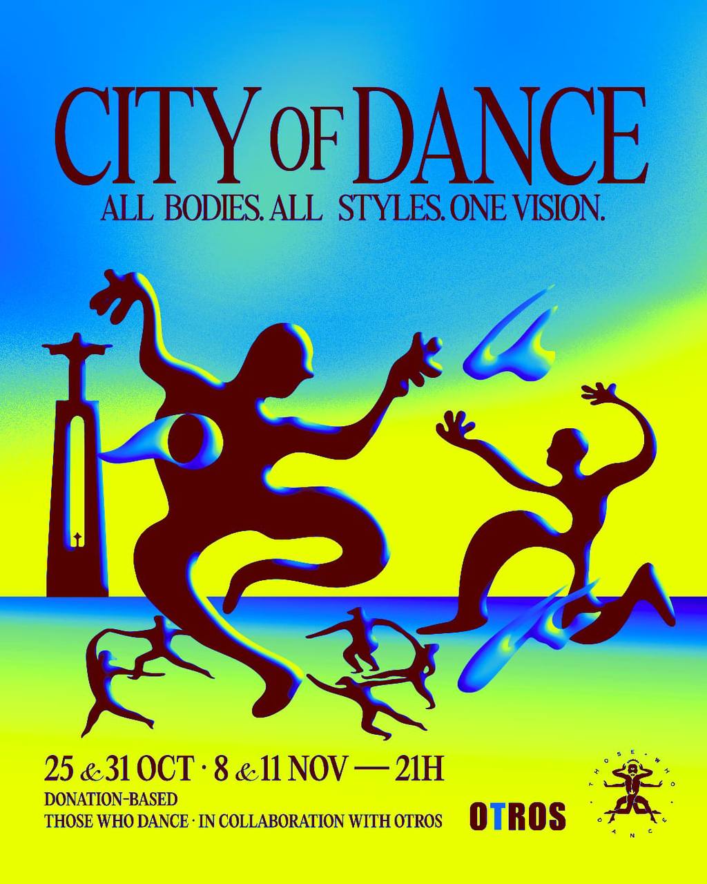 Cada noite começa com a performance coletiva CIDADE DA DANÇA e prolonga-se numa das nossas festas de assinatura.