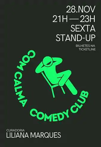 Mergulha numa noite de stand-up sem filtros no Com Calma Comedy Club. Liliana Marques recebe comediantes diferentes em cada sessão, combinando testes de material com atuações de humoristas experientes. Um ambiente intimista, piadas novas e momentos únicos para quem gosta do humor no seu estado mais puro.