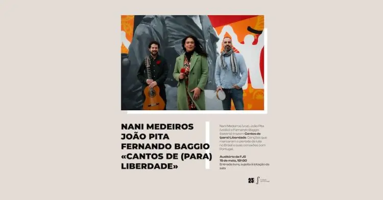 No dia 15 de maio, pelas 18h30, auditório da FJS acolhe o concerto “Cantos de (para) a liberdade”, com Nani Medeiros (voz), João Pita (violão) e Fernando Baggio (bateria).