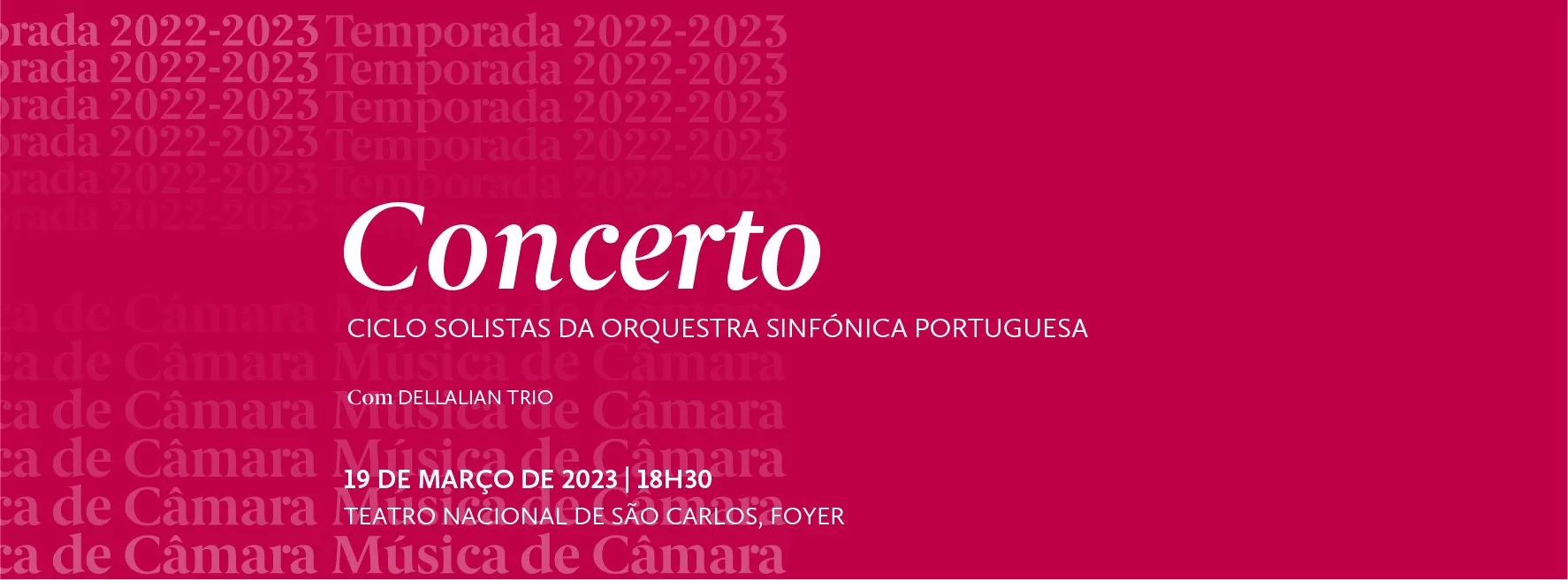 Concerto de Música de Câmara Ciclo Solistas da Orquestra Sinfónica Portuguesa Teatro Nacional de São Carlos, Foyer, entrada livre 9 de março de 2023, 18h30