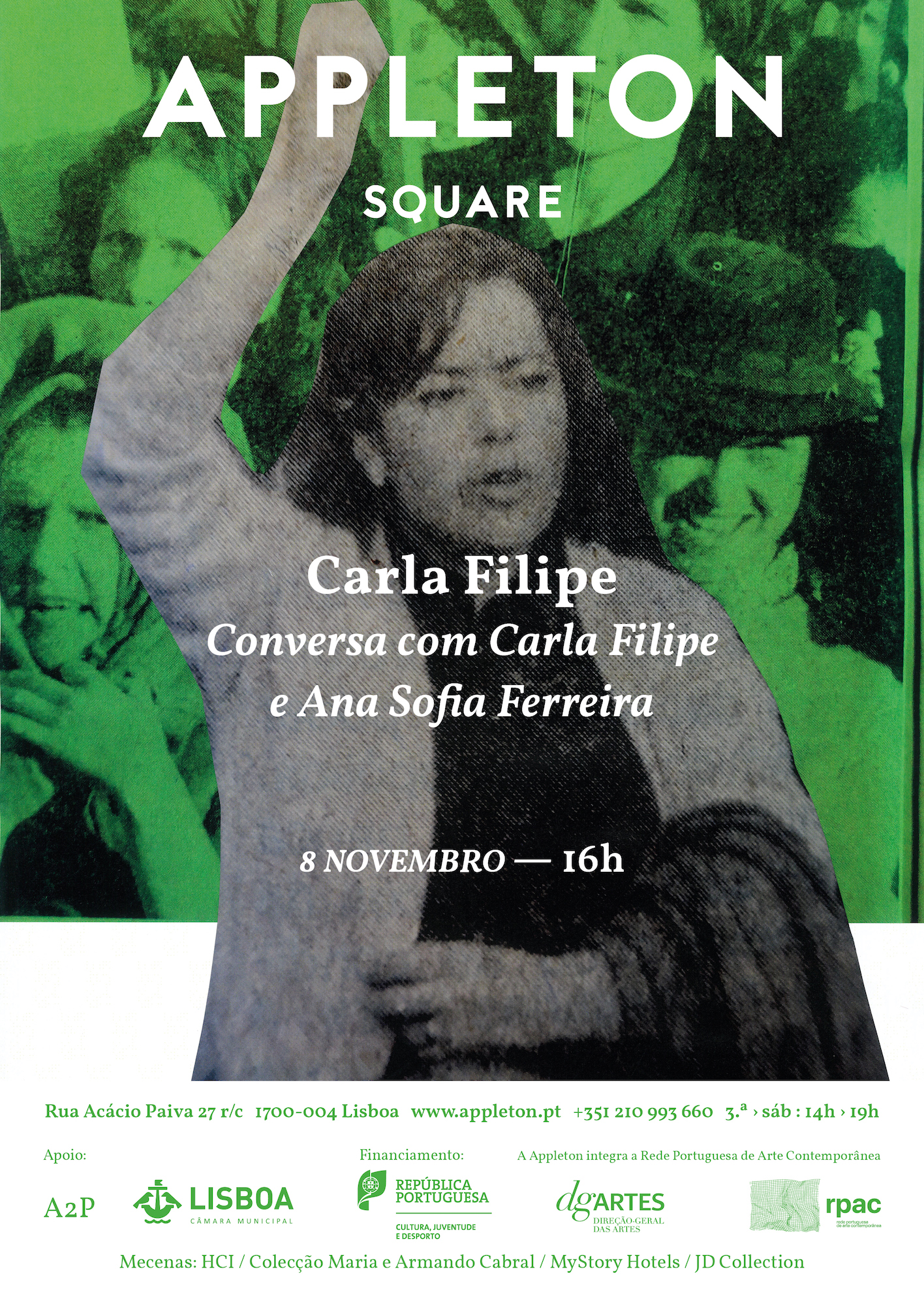 No âmbito da exposição, Não está presente, porque está ausente. Está presente, mesmo ausente, a artista Carla Filipe conversa com Ana Sofia Ferreira sobre o arquivo, as ausências femininas na história e o poder político da imagem, num tempo em que o grito feminino permanece um ato político. Entrada livre, sujeita à lotação do espaço.
