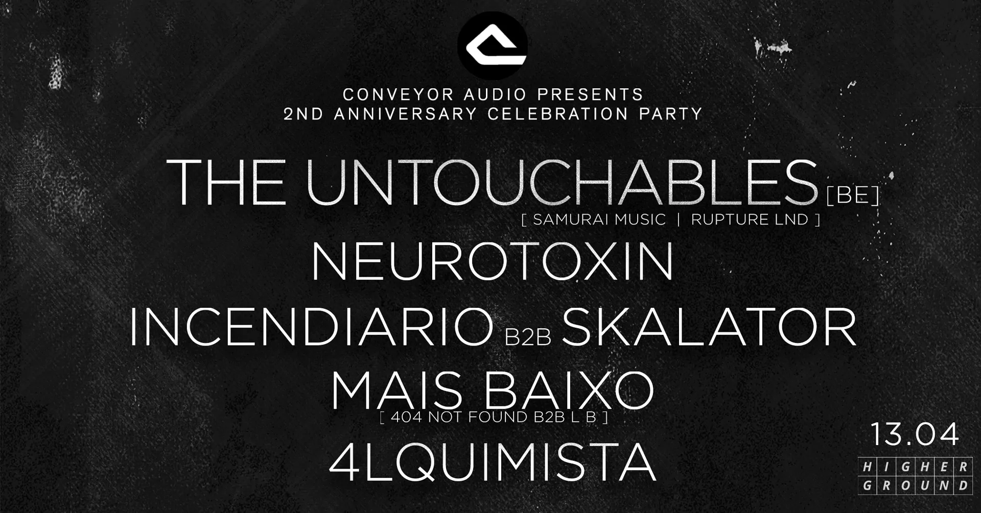 As for the venue in detail: It will take place on 13.04 [11PM-06AM] @ Higher Ground, Lisbon. [ Specific location provided later when closer to the event. ] Tickets will be available directly with Conveyor Audio [by email, through conveyoraudio@gmail.com] or through Resident Advisor platform.