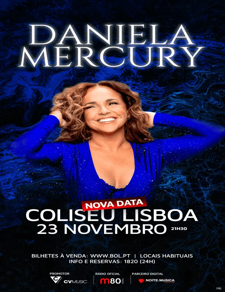 Vimos comunicar a todos os fãs da Daniela Mercury que o espetáculo previsto para o dia 10 de Julho no Coliseu de Lisboa, foi adiado para o dia 23 de Novembro de 2022, por motivos de agenda da Artista.