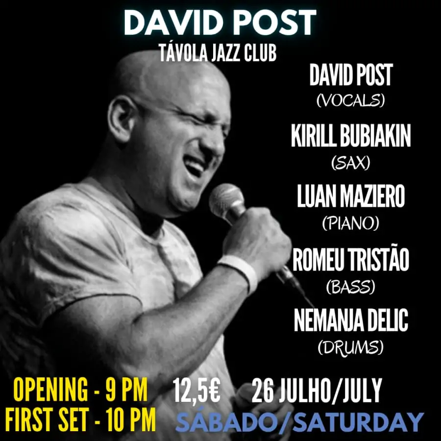 Cantor de jazz com formação em direção musical, David Post já estudou com ícones como Bobby McFerrin, Dave Holland, Kenny Wheeler e George Russell. Suas composições já foram interpretadas por músicos premiados com Grammy, e sua performance combina sofisticação vocal, presença cênica e um profundo entendimento do jazz contemporâneo.