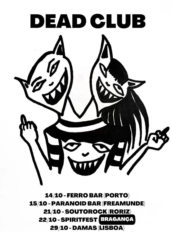 Regresso desta conjura de Violeta Luz a nossa casa, agora no formato duo – ao lado de João Silveira – com que tem calcorreado o país todo numa revelação de infátigável espírito de resiliência perante o torpor que tem tomado cada vez mais conta das coisas por aqui. Rock enquanto sobrevivência, portanto. Aquilo que devia sempre ser. Em Dead Club, o género é reavivado a electro-choques do synth punk e assume aquele brilho refractado quase glam no balanço e poder antémico, electricidade a conduzir as palavras de Violeta naquele esgar e sensualidade que ícones como Courtney Love ou Kat Bjelland. Aparecem sob a nossa bola de espelhos em vésperas da edição do aguardado álbum de estreia.