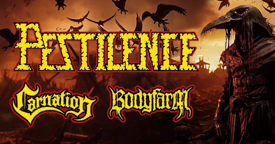 Os Veteranos PESTILENCE, umas das melhores bandas do old school Death Metal,regressam a Portugal para 2 datas onde irão apresentar um concerto com o BEST OF da banda e onde serão acompahados dos belgas CARNATION que vêem promover o seu mais recente álbum “cursed mortaliity e também acompanhados dos BODYFARM em promoção ao novo álbum “ultimate abomination ” Para os amantes de bom death metal será uma noite inesquecível!!!