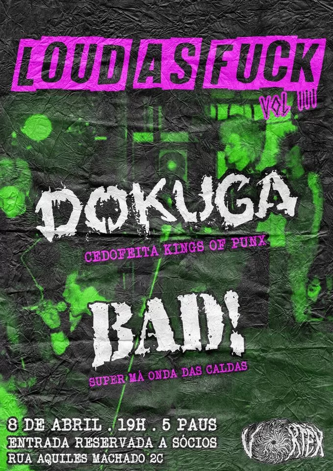 LET’S GO! Dia 8 de Abril, temos o prazer de receber Dokuga e BAD! no Vortex, para mais uma sessão de demolição nas catacumbas de Lisboa com mais distorção: