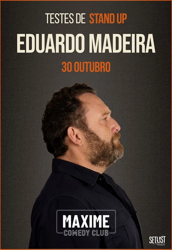 No dia 30 de outubro de 2025, o Maxime Restaurante Bar recebe Eduardo Madeira para uma sessão especial de stand-up comedy, onde o humor surge na sua forma mais pura: improvisado, cru e sem filtros.