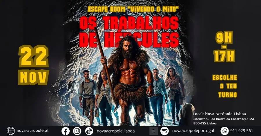 No dia 22 de novembro de 2025, a Nova Acrópole Lisboa apresenta o Escape Room “Vivendo o Mito – Os Trabalhos de Hércules”, uma experiência interativa que desafia participantes a percorrer os passos do herói da mitologia grega.