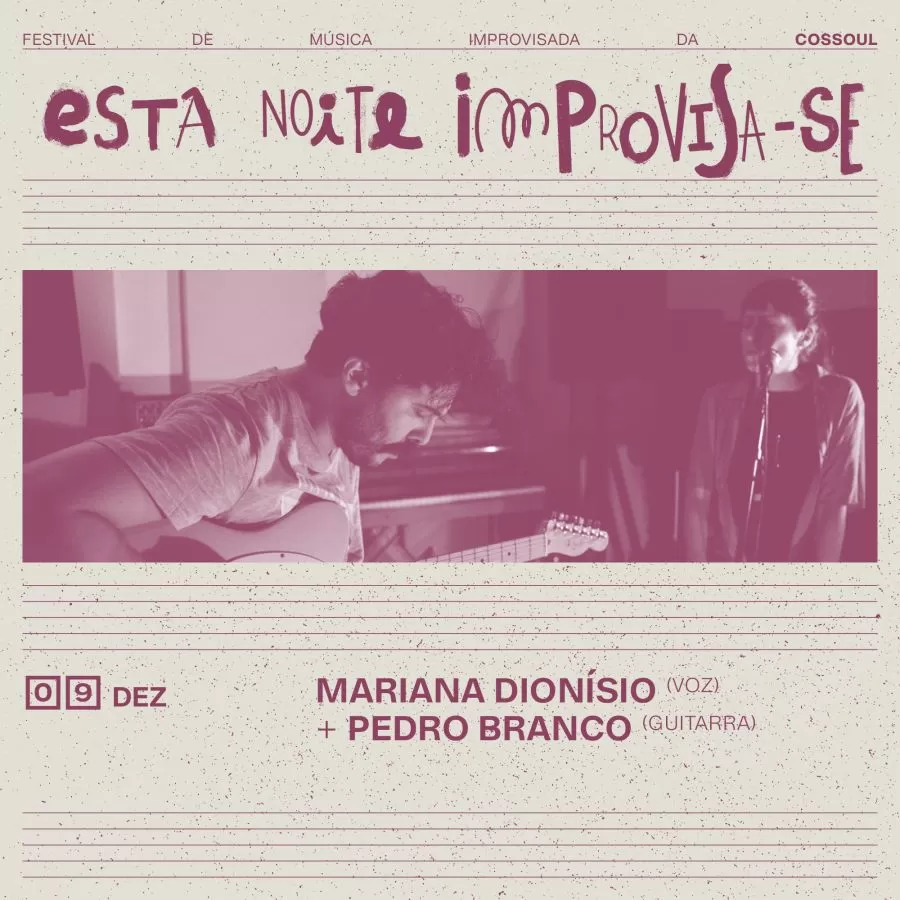 A Cossoul organiza, de 16 de Novembro a 16 de Dezembro, a primeira edição de esta noite improvisa-se, um festival dedicado à Música Improvisada. Serão mais de dez noites dedicadas a este género musical, que tem ganho expressividade no panorama nacional e cuja programação conta com o apoio das editoras Phonogram unit e Creative Sources. As apresentações realizam-se às 21h, na Sala Principal da Cossoul. O bilhete de cada actuação tem o custo de 7€, para público em geral, e 5€ para sócios Cossoul. A venda acontece na entrada do evento. O festival esta noite improvisa-se tem o apoio da Direcção Geral das Artes. Mariana Dionísio é uma cantora, improvisadora e compositora que tem questionado o papel da voz na tradição musical e explorado o seu potencial técnico, tímbrico e poético enquanto expressão sonora da palavra. De formação clássica em piano pelo Conservatório Nacional de Lisboa, e uma licenciatura voz Jazz pela Escola Superior de Música de Lisboa, Mariana insere-se sobretudo no panorama jazzístico, experimental e contemporâneo. — Pedro Branco é um guitarrista de Lisboa, que além da carreira solo, integra bandas como as de Tiago Bettencourt e de You Can’t Win, Charlie Brown, partilha o palco com artistas como Noiserv, Lena D’Água, Benjamim ou Salvador Sobral. Depois de participar em diversos discos enquanto co-líder e em projetos como Old Mountain, EEL SLAP! ou João Hasselberg & Pedro Branco decidiu lançar, em junho deste ano, “A Narrativa Épica do Quotidiano”, álbum onde estreia em nome próprio.