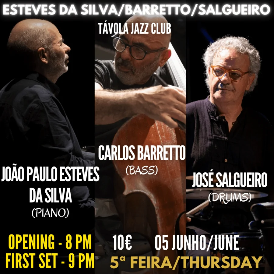 No dia 5 de junho de 2025, das 21h00 às 23h00, o Távola Jazz Club em Lisboa recebe um trio de jazz extraordinário: João Paulo Esteves da Silva ao piano, Carlos Barretto no contrabaixo e José Salgueiro na bateria.