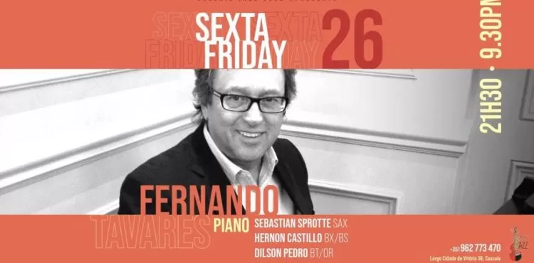 FERNANDO TAVARES 4TET Fernando Tavares, natural de Salreu, Estarreja, distrito de Aveiro, e um pianista auto -didata que divide o seu tempo entre Toronto, Canada e Portugal. A sua paixao pela musica e em especial o jazz e latin jazz é evidente. Tem acompanhado grandes musicos como Bill McBirnie (jazz flute) e Michael Massaro (tenor sax) entre outros. Quando volta a Portugal faz questão de se acompanhar por alguns dos músicos mais prestigiados da cena internacional