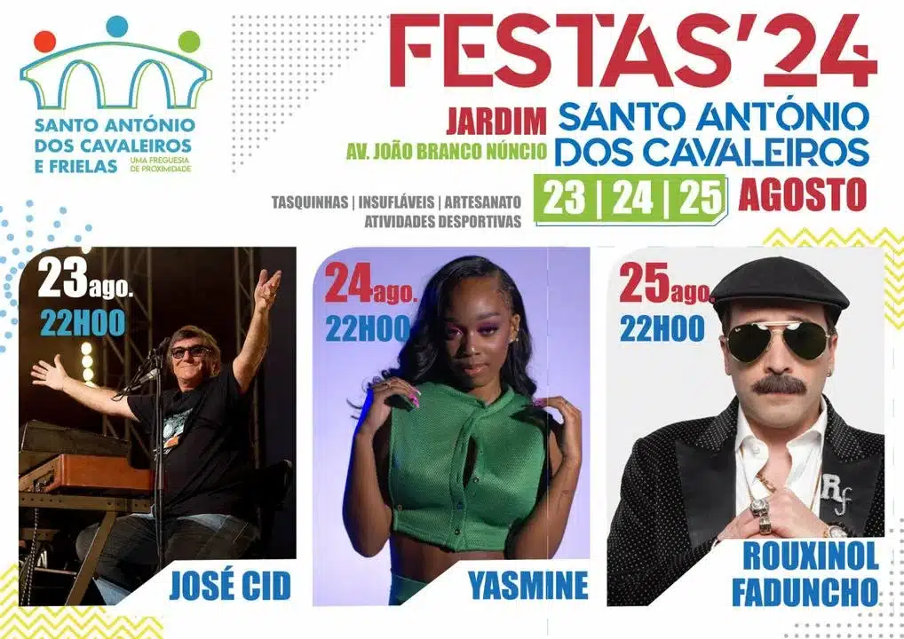 As tão aguardadas Festas de Santo António dos Cavaleiros estão a chegar, e este ano prometem trazer três dias de muita música, diversão e momentos inesquecíveis! De 23 a 25 de agosto, o Jardim Santo António dos Cavaleiros vai transformar-se num palco de celebração, com um programa especial e diversificado que irá agradar a todas as idades.