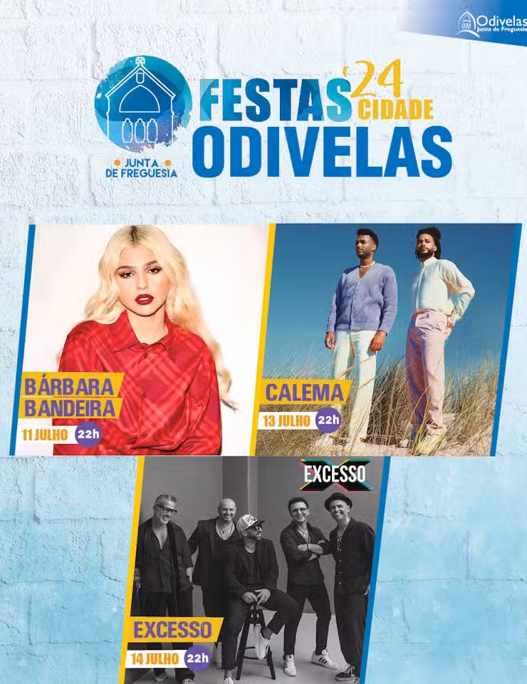 Destaque para os Concertos: Não perca os concertos de Bárbara Bandeira (dia 11), Calema (dia 13) e Excesso (dia 14). Além disso, contaremos com a presença de Toy, Rui Bandeira e outros artistas surpresa, bem como a Banda Maior de Odivelas.