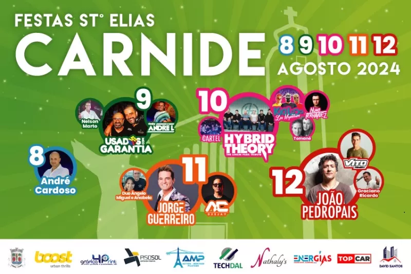 De 8 a 12 de agosto, a atmosfera vibrante de Carnide será inundada com a alegria e devoção durante as festas em honra de Santo Elias. Este evento anual promete uma fusão de música, tradição e entretenimento para celebrar a venerada figura religiosa e proporcionar momentos de convívio à comunidade.