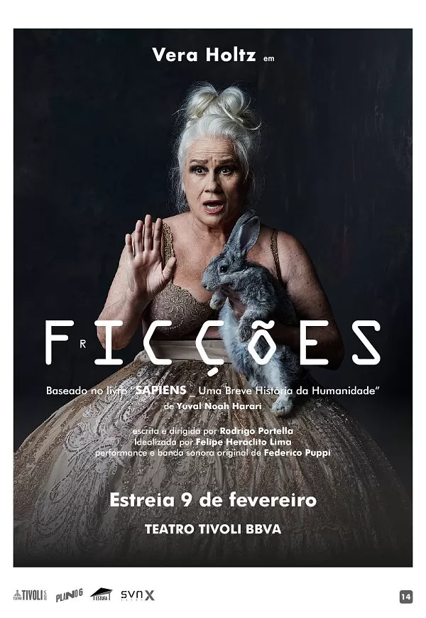 A actriz desdobra-se em personagens, canta, improvisa, conversa com a plateia, brinca e instiga-a a pensar. A peça Ficções, inspirada no best-seller Sapiens, de Yuval Harari, é um espectáculo único e poderoso que nos leva a viajar pela história da Humanidade. Um desafio que nos propõe reflexões sobre a evolução humana e o caminho que ela leva. Vera Holtz, premiada pela sua genial interpretação em Ficções, estará em palco acompanhada pelo músico Federico Pupii. O monólogo foi escrito para a actriz e funde a “Vera Viral”, enquanto persona do seu tão peculiar Instagram, com a actriz, a mulher de cabelos brancos, sem filhos, que questiona: o que andamos a fazer com as nossas virtudes? Um espectáculo arrebatador, imperdível que nos levará de mãos dadas com uma das melhores actrizes de sempre do Brasil, a uma reflexão obrigatória e necessária.