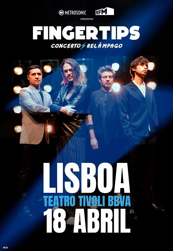 Prepara-te para mais um concerto relâmpago dos Fingertips, agora no Teatro Tivoli BBVA, em Lisboa, a 18 de abril de 2024! Após uma atuação eletrizante no Coliseu do Porto, os Fingertips estão prontos para conquistar a capital portuguesa com uma performance que antecipam ser “incrível”. O alinhamento da noite incluirá os maiores êxitos da banda, como “Picture of My Own”, “`Cause to Love You” e “Melancholic Ballad”. Estes temas, que conquistaram os corações dos fãs por todo o país, serão a banda sonora de uma noite repleta de emoção e nostalgia. Não percas a oportunidade de assistir ao vivo ao talento único dos Fingertips, uma banda que continua a impressionar e a emocionar profundamente os seus fãs. Vais perder esta oportunidade de ver os Fingertips ao vivo?