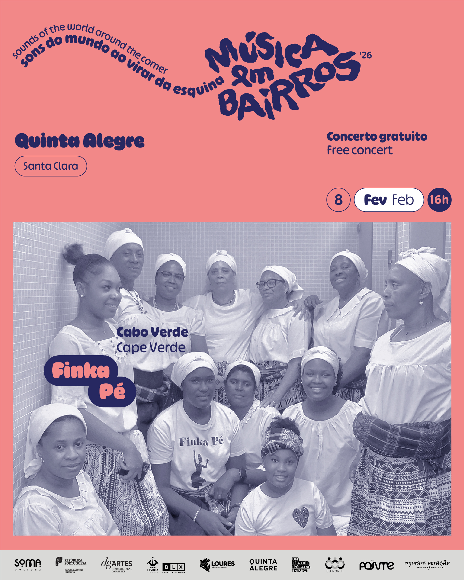 A segunda edição do Música em Bairros, o ciclo de concertos e oficinas gratuitas que percorre a grande Lisboa, começa já no próximo dia 8 de Fevereiro, na @quinta__alegre , com as Finka Pé, grupo de Batucadeiras de Cabo Verde.