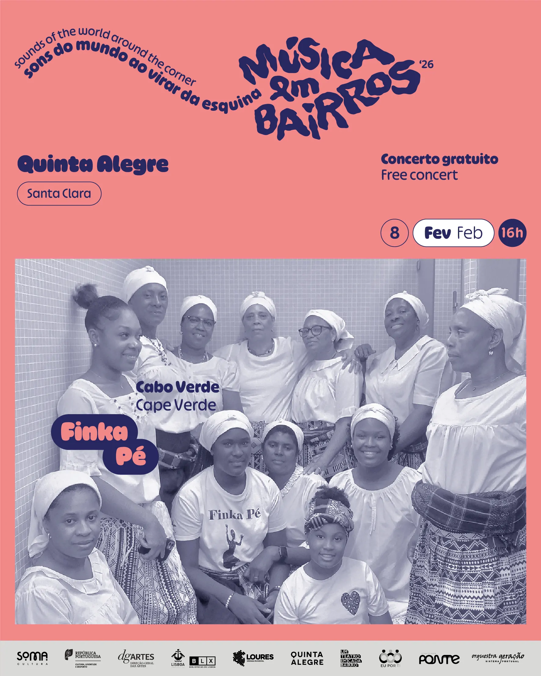 The second edition of Música em Bairros , a series of free concerts and workshops that travels across Greater Lisbon, kicks off on February 8 at @quinta__alegre, featuring Finka Pé, a group of Batucadeiras from Cape Verde.
