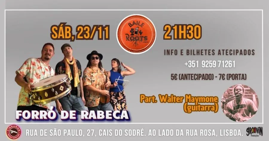 Próximo Sábado, 23 de Novembro, o Forró de Rabeca retorna a Lisboa para uma noite cheia de energia, após uma digressão pelo norte da Europa! Este baile vai ser um verdadeiro reencontro com o público e o Cinnamon Indian Tapas Bar, o local original onde começou o Baile Roots. Prepare-se para dançar ao som do autêntico forró pé-de-serra nordestino!