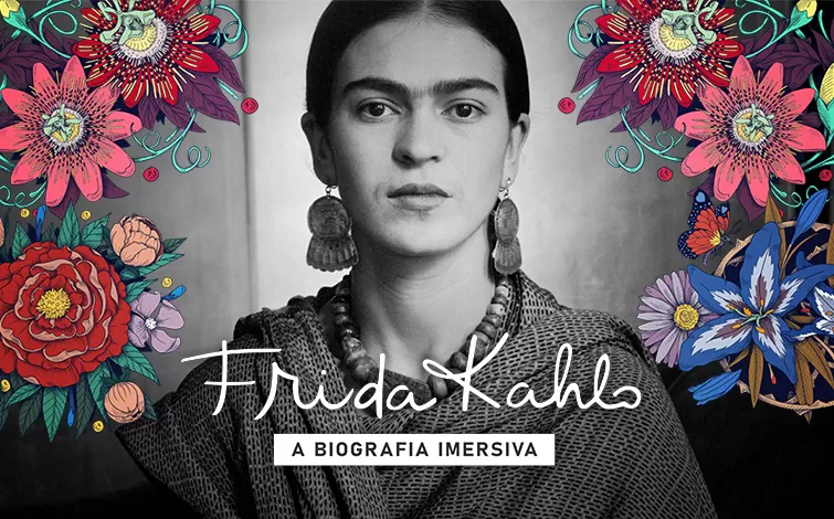 A biografia imersiva de Frida Kahlo é apresentada sem reproduções de pinturas da artista com a intenção de dar total destaque à sua experiência vida.
