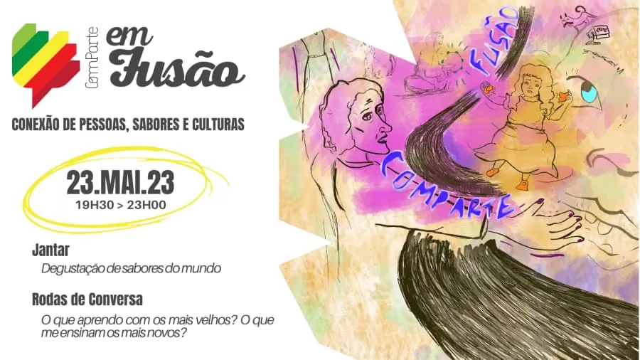 O ComParte em Fusão é um jantar de degustação e oportunidade de conexão de pessoas, sabores e culturas. Vem jantar num ambiente muito inspirador onde se cruzam diferentes vidas, histórias e culturas, e ajuda-nos a encher a casa de vida e alegria! Cada pessoa traz um prato para partilhar! A noite é recheada de pequenas dinâmicas que culminam em rodas de conversa. Desta vez, o tema é O que aprendo com os mais velhos? O que me ensinam os mais novos?”. Contamos contigo? O jantar é gratuito, mas tem inscrição obrigatória: https://tinyurl.com/FusaoMaio23