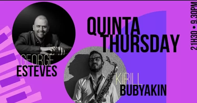 George Esteves piano / vocals Kirill Bubyakin sax GEORGE ESTEVES piano e voz Frequentou o curso de Piano e composição da Academia de artes e novas Tecnologias. Estudou Piano Clássico durante cinco anos. Frequentou os cursos de Piano e Percussão na Escola de Jazz do Hot Club. Em Inglaterra completou, com distinção, o curso BTEC National Diploma in Popular Music no Bournemouth and Poole College. Iniciou-se a actuar em publico, aos 15 anos, como baterista substituto no Casino Estoril, Durante os dois anos que estudou em Inglaterra, fez parte do quinteto de Jazz «Jazzmania» como baterista. A solo actuou como cantor e «entertainer» acompanhando-se com sintetizador e piano-solo, em diversos «Pubs» e restaurantes salientando-se o exclusivo Club privado «The Mansion House» em Bournemouth. Actuou diversas vezes acompanhado pela «Bournemouth Big Band» no «Pavillion Theatre» de Bournemouth e realizou dois espectáculos cantando musica de Frank Sinatra. «Tribute to Frank Sinatra» e «Sinatra Swings Again» acompanhado pela «The Eddie Robinson orquestra». Desde entao tem actuado em diversos hoteis, casinos e salas de espectaculo na zona de Lisboa. Artista com quem se apresentou nos últimos anos Renato D´Aiello , Philip Hamilton, Aldo Zunino, Art Themen, Jay Core, Maria Viana entre muitos outros É pianista residente no Cascais Jazz Club desde 2012 ( interrompeu a residência entre finais de 2016 e princípio de 2017 e , mais recentemente em Outubro de 2018 para ser pianista residente no celebrado clube de jazz londrino Ronnie Scott`s GEORGE ESTEVES piano and vocals George Esteves began his musical career at 15 years as substitute drummer in the Estoril Casino. He studied classical piano for five years, continued study of piano and composition at the Academy of Arts and New Technologies, and also attended piano and percussion courses at the Hot Club Jazz Escola. In England he completed, with distinction, the BTEC National Diploma in Popular Music in Bournemouth and Poole College. During his two years in England, he played drums with the jazz quintet “Jazzmania”. He also performed solo as a singer and entertainer with synthesizer and piano in a number of pubs and restaurants in Bournemouth, including the exclusive private club “The Mansion House”. He was accompanied by the Bournemouth Big Band at the Pavillion Theater in Bournemouth, where he also held two shows singing Frank Sinatra’s music, “Tribute to Frank Sinatra” and “Sinatra Swings Again,” accompanied by the Eddie Robinson Orchestra. Since then he has acted in numerous hotels, casinos and showrooms in the Lisbon area. He has performed in recent years with many artists, including Renato D’Aiello, Philip Hamilton, Aldo Zunino, Art Themen, Jay Core, Maria Viana, among many others. Since 2012 he has been a resident pianist at the Cascais Jazz Club, interrupted in late 2016 and early 2017, and again from October to November 2018, to be a resident pianist at the celebrated London jazz club Ronnie Scott’s. __________________